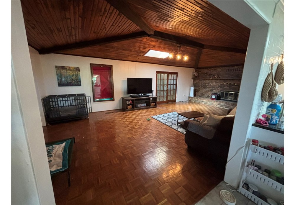 Beautifully updated, private, peaceful home on 4 acres. Great for home business, horses, gardening or city getaway. Home features huge sunroom, tongue-groove pine ceiling great room with large wall to wall brick wood burn fireplace, 2 living areas, 1 w/parquet wood, perfect for dancing! 4 beds or 3 beds/office. Fenced area w/arbor for entertaining. Formal dining & large laundry area. Newer roof, newer X-large 2 car garage. Well maintained home. Sunroom is 480 square feet.