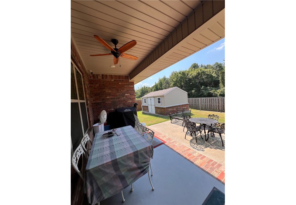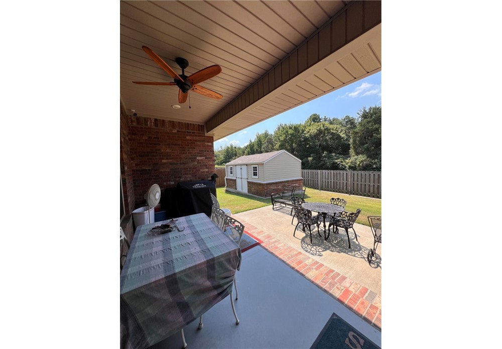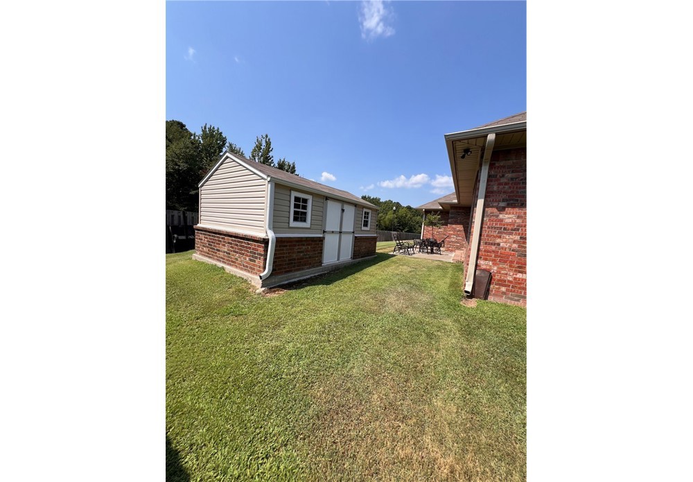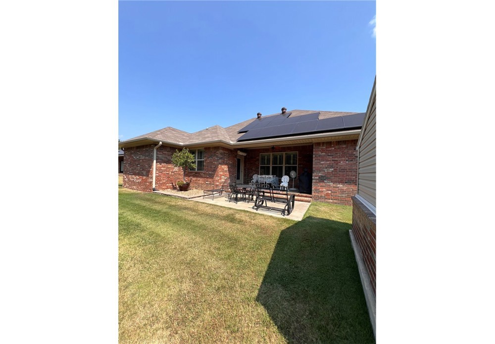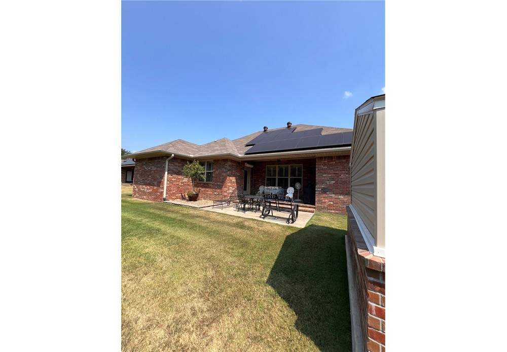 Spring into savings with this beautiful, energy-efficient home! Seller is offering concessions with an acceptable offer. Concessions may be applied toward buyer’s allowable closing costs, interest rate buy-down, or other lender-approved expenses. Buyer may also apply concessions toward the solar loan balance, subject to lender approval. * Custom-built home completed in 2020 featuring 3 bedrooms and 2 full bathrooms. Open / split floor plan includes living area, dining area, and kitchen with granite countertops, pantry, and plantation shutters. Separate laundry room. * Primary suite includes a walk-in closet and beautiful ensuite * Exterior features include a covered back patio with installed blower system and a 10x16 storage building suitable for workshop or storage use. * Property is equipped with solar panels for energy efficiency. * Conveniently located near downtown Russellville with access to shopping, schools, and recreational trails. * Schedule a showing today!